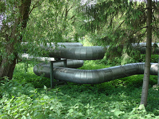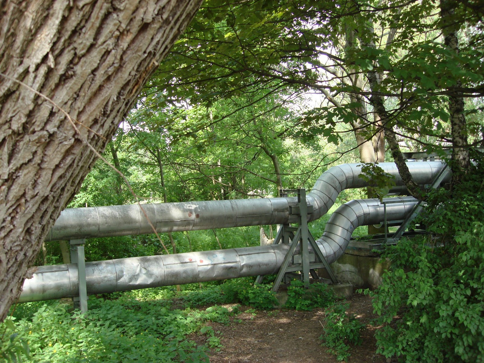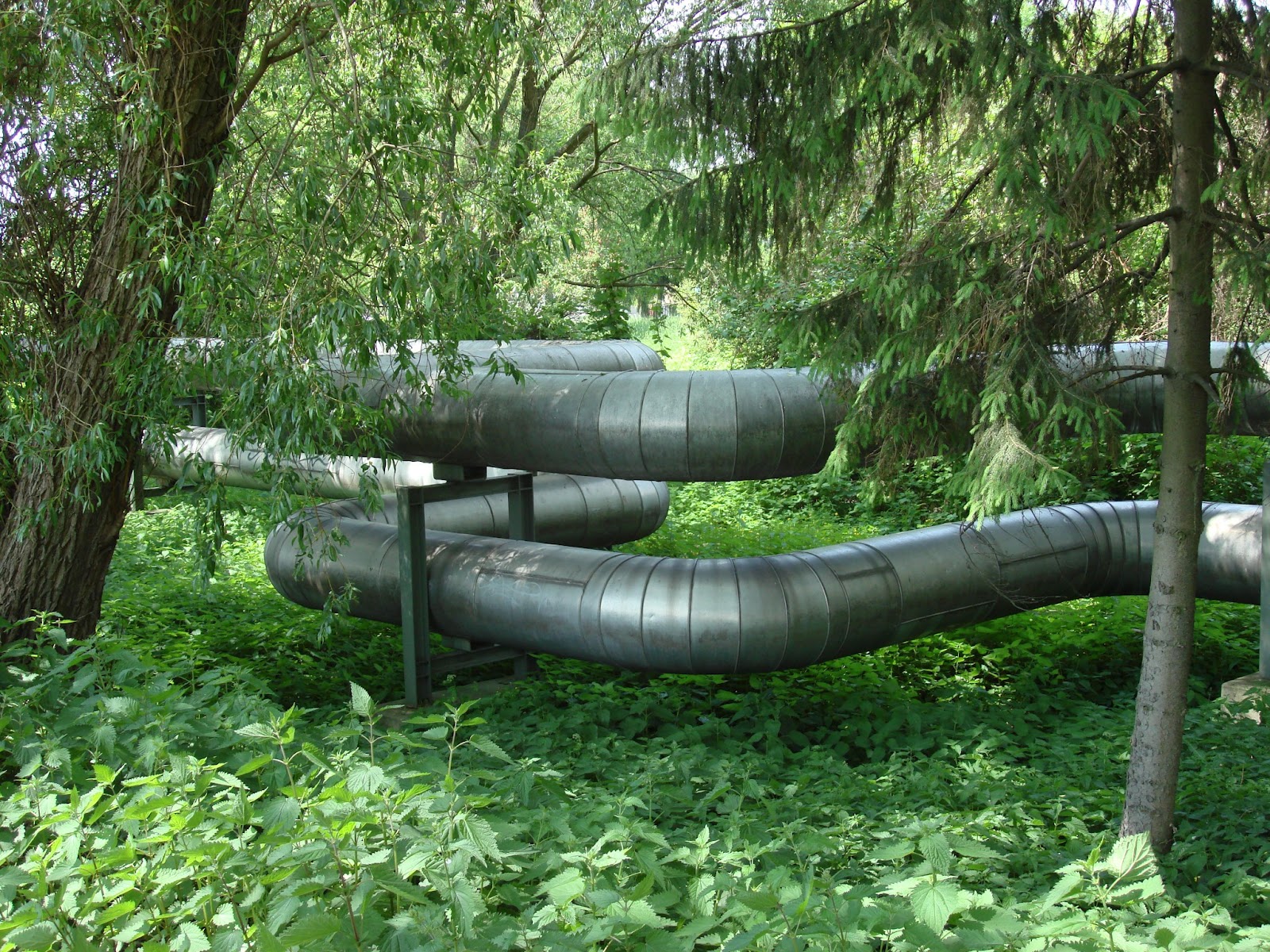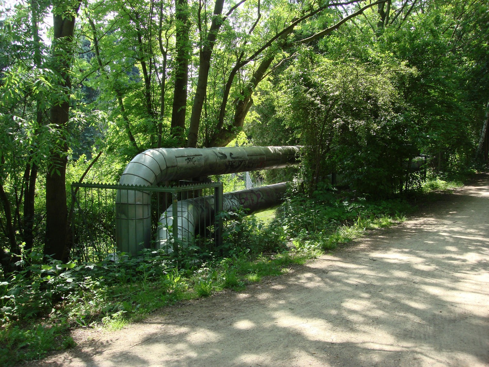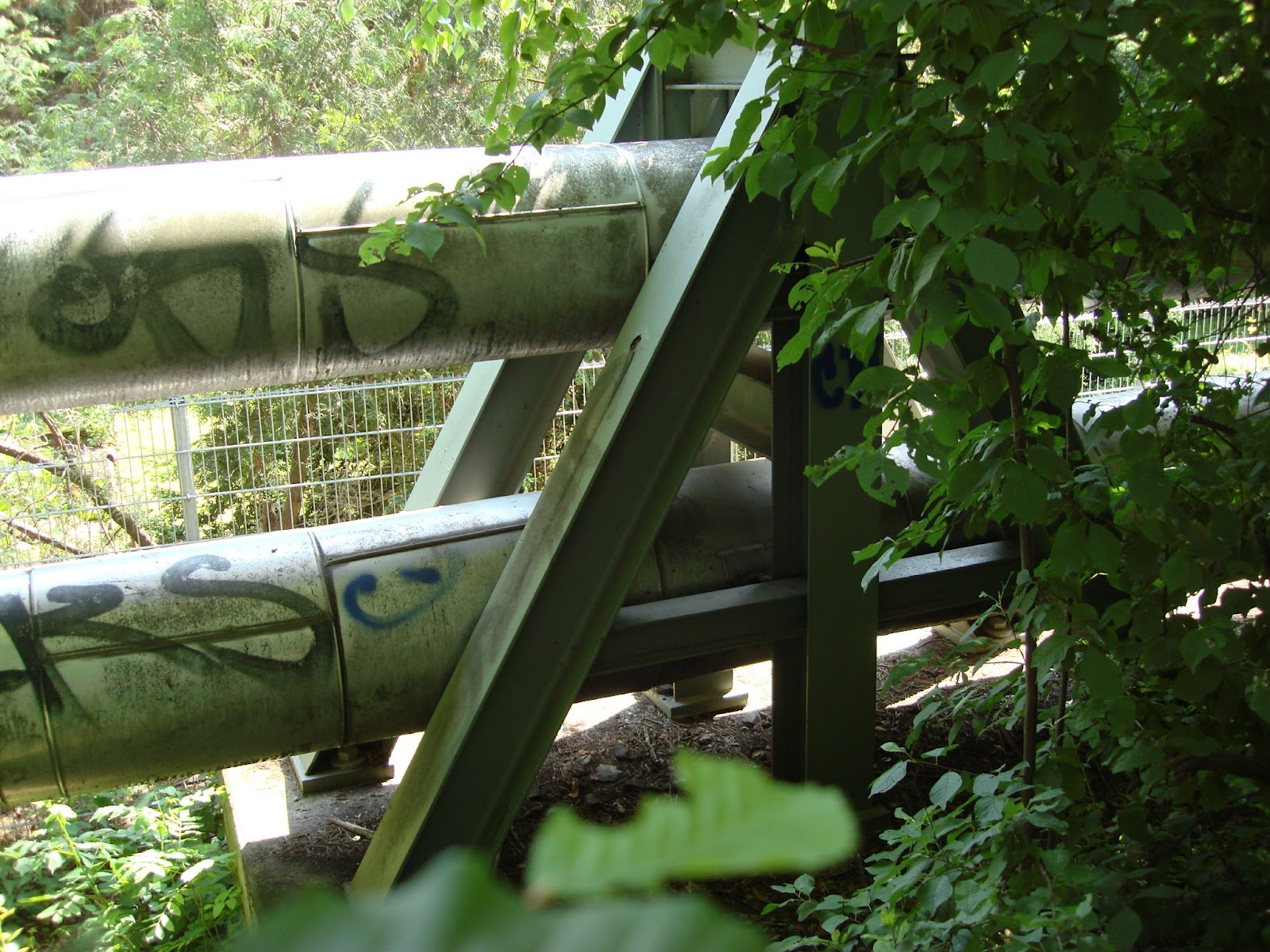 Statt Ex-Umweltminister-Leberwurst gibt es also wieder Bilder. Heute im Programm: Scheue Industrierohre in freier Wildbahn, die sich in bemerkenswerter Eleganz ihren Weg durch die feindliche und unfreundliche Natur bahnen.